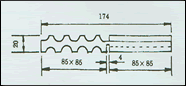 85 X 42.5 、85 X 85、131.5 X 85、174 X 85、220.5 X 85、263 X 85、174 X 174、263 X 174等,可以基本塊為單位。根據(jù)需要任意拼裝,每一基本塊使用的橡膠硬度又分為40°、60°、80°、三種規(guī)格,以適應(yīng)不同垂向設(shè)計負(fù)載。